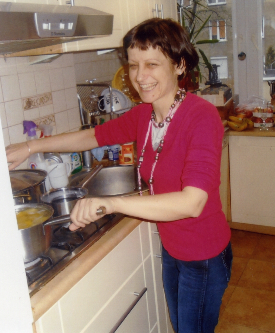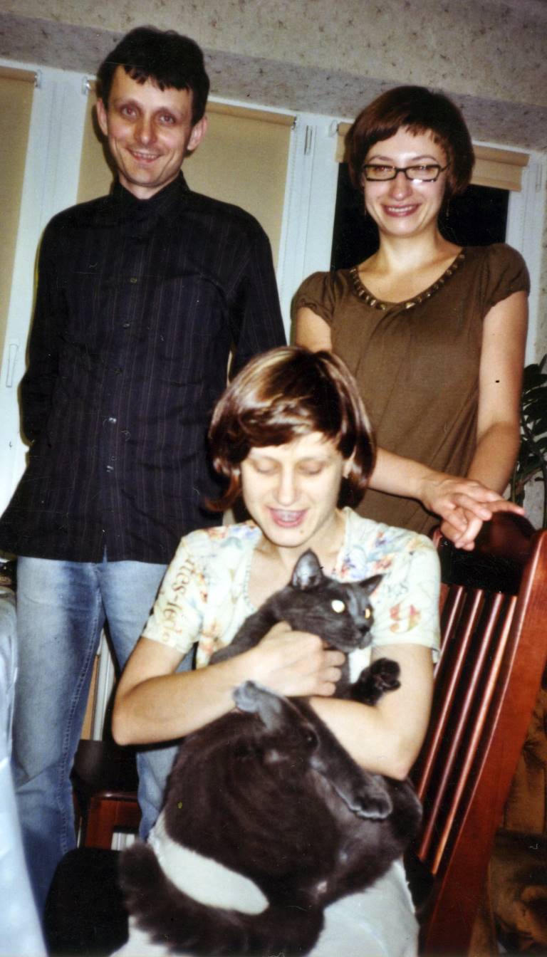6. W mieszkaniu w Warszawie: Kinga z ukochanym kotkiem Franiem, mąż Krzysztof, kuzynka Zuzia